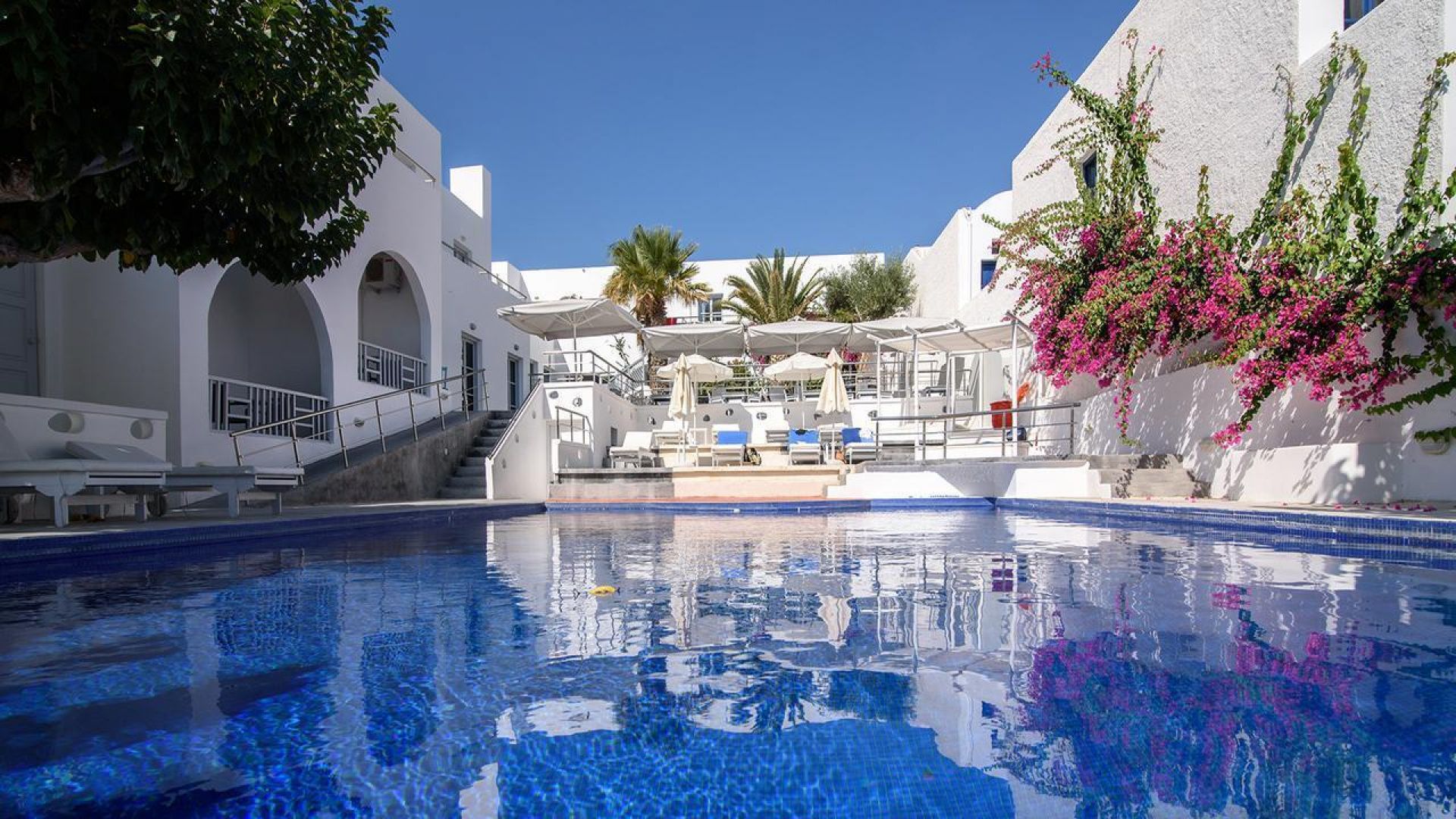 Със стоето чудесно местоположение на плажа, в центъра на село Камари, в блозост до много ресторанти, таверни, барове и магазини, хотел "RK beach" е идеален избор на Вашата почивка. Построен в традиционна цикладска архитектура, предлага на своите гости настаняване в просторни и елегантно декорирани стаи, за да отговори на всички Ваши нужди.