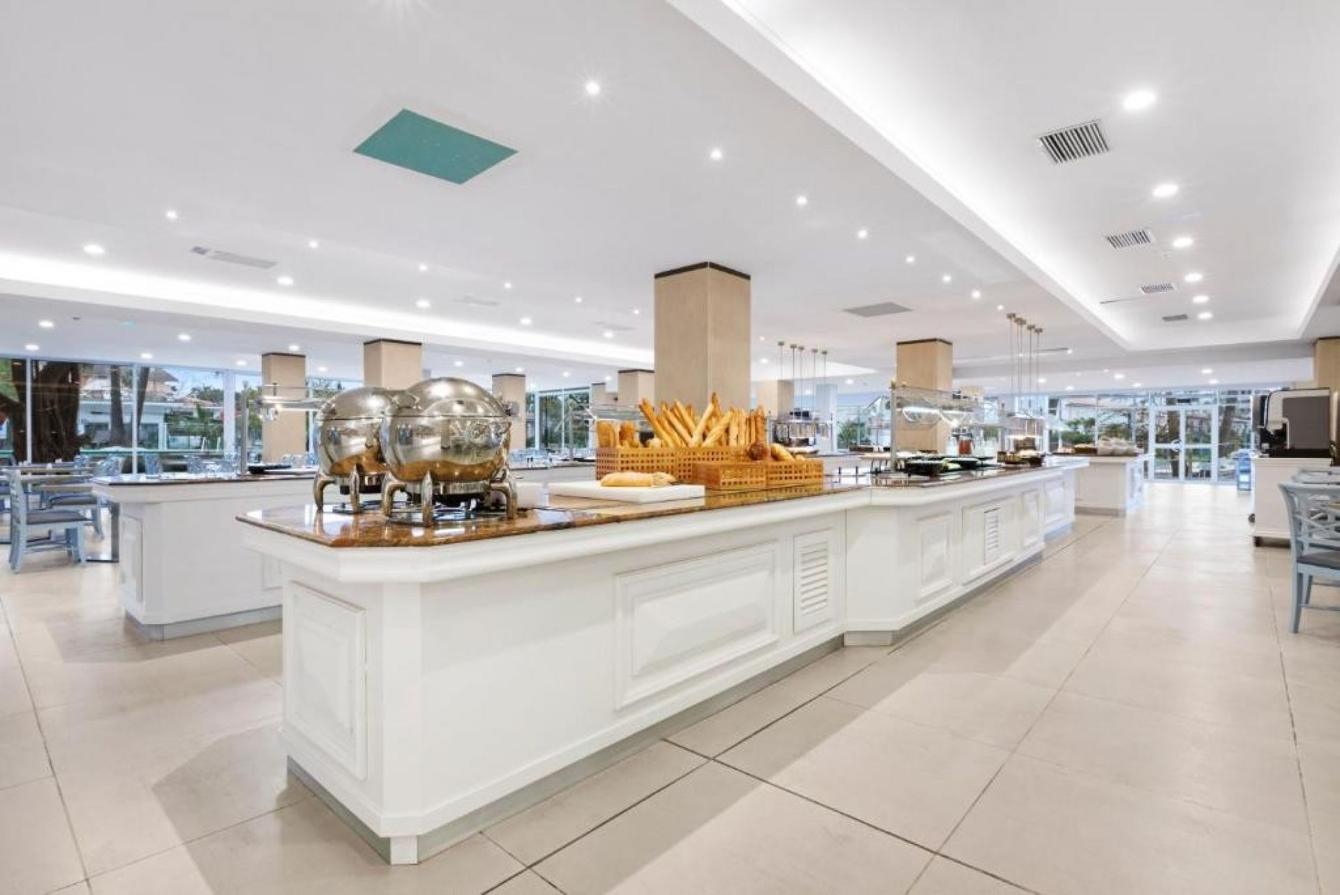 На територията: Голям открит басейн. Слънчева тераса. Панорамни гледки. Основен Бюфет ресторант. Спортни и други забавления. Вътрешен голям басейн. Спа и уелнес център. Фитнес център и мултиспорт корт.Бар. Стаите разполагат с тераса, климатик,телевизия, интернет-безплатен. All inclusive услуги.