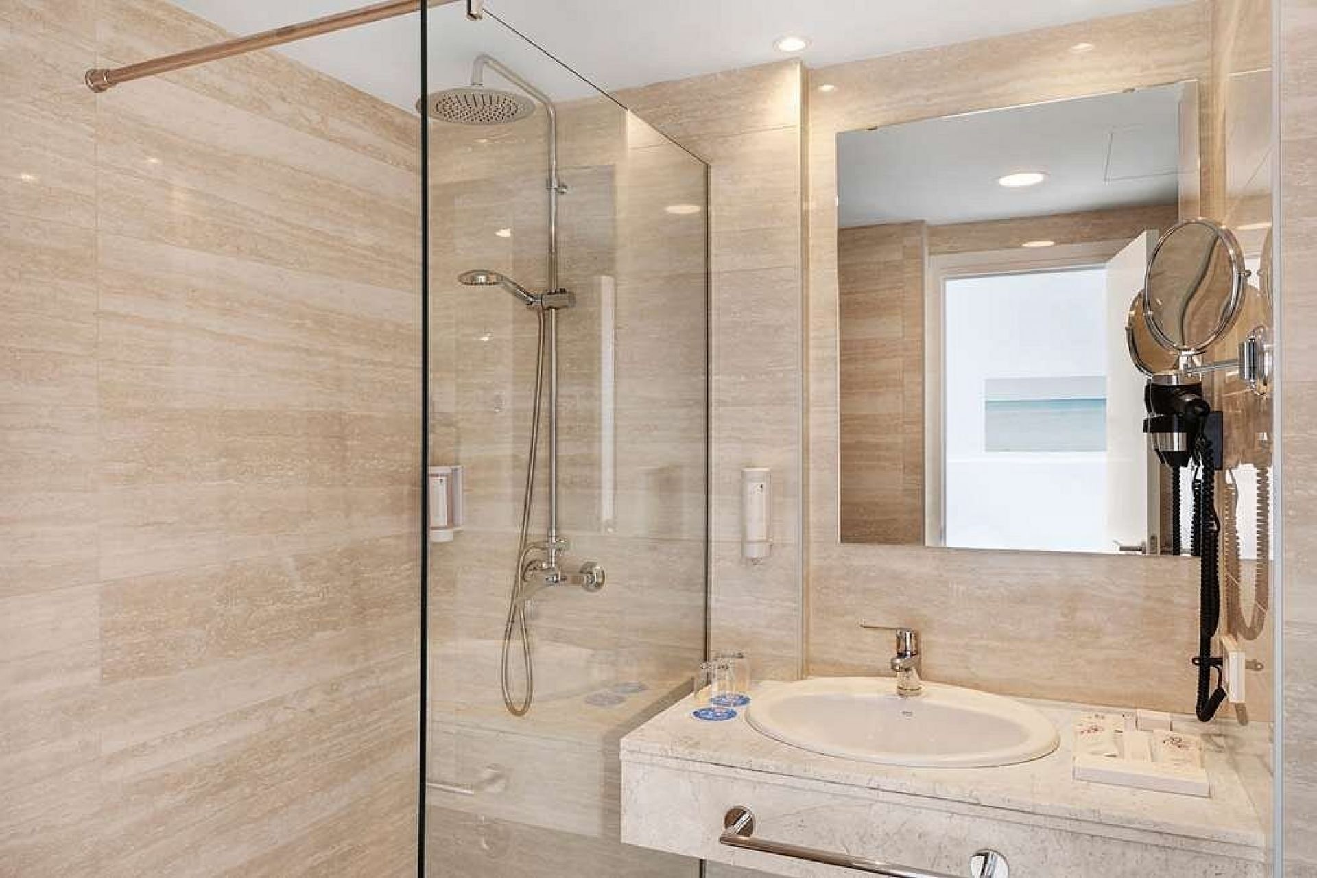 Плаж: Обществен пясъчен плаж на 150 м от хотела (2-ра брегова линия), между хотела и плажа има път и крайбрежна алея. Чадъри и шезлонги се предлагат срещу заплащане.