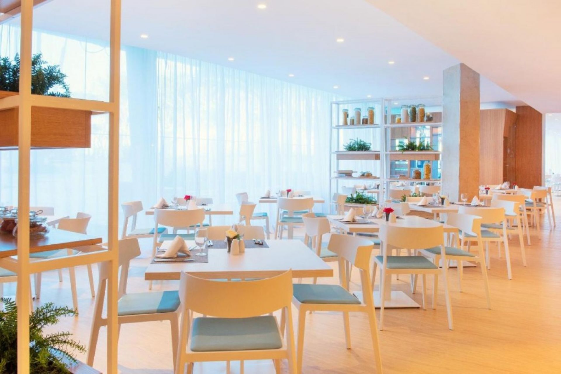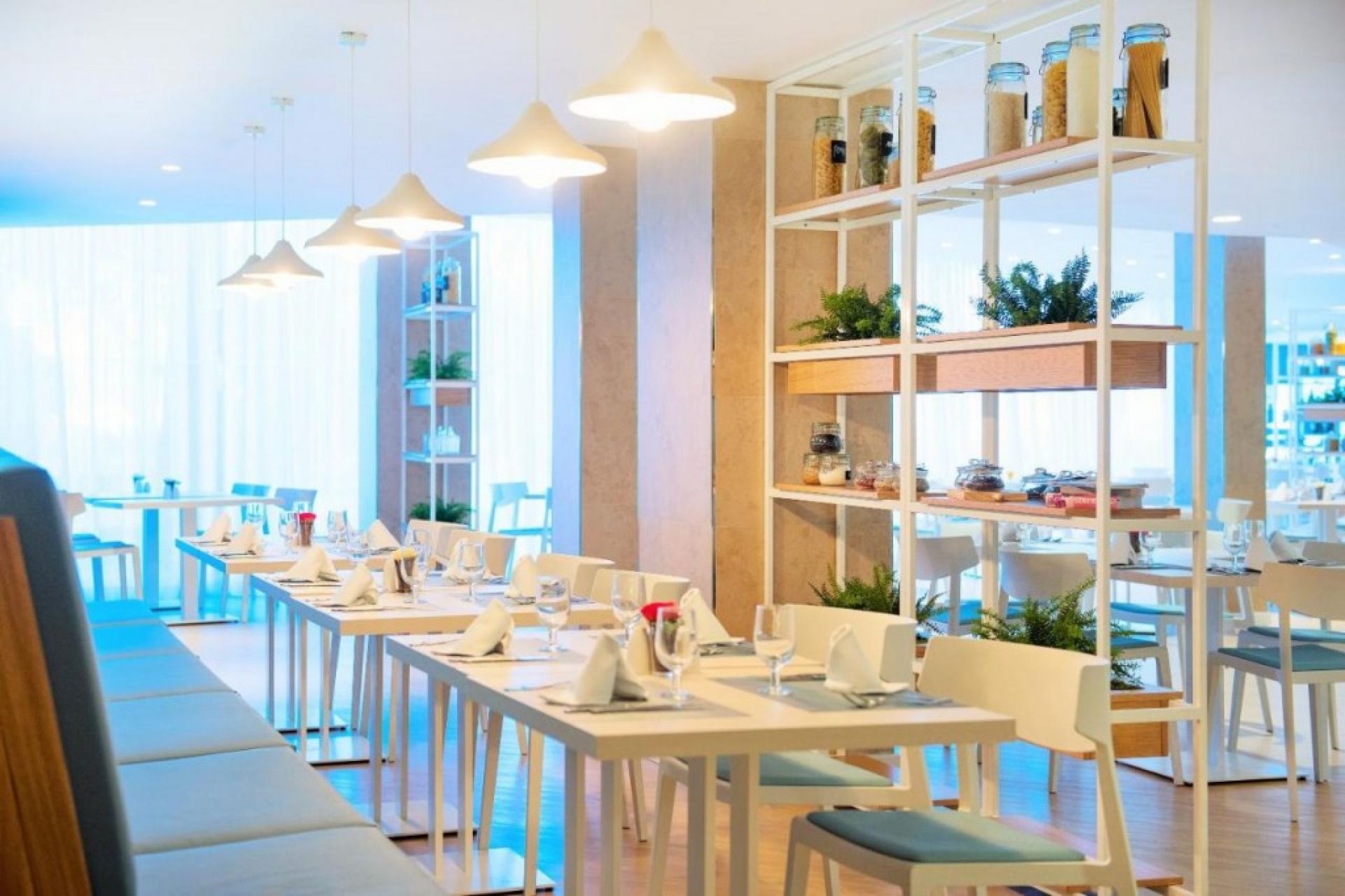 На територията на хотела: Хотелът разполага с интернет кафе, четири бара, пет конферентни зали, помещение за багаж, ресторант Tramuntana с бюфет, пералня на самообслужване, коли под наем, а-ла-карт ресторант Llevant с обяди и средиземноморска кухня, лекар, безплатни кърпи край басейна, гараж за велосипеди, четири басейна (три открити и един закрит отопляем), обмяна на валута, безплатни чадъри и шезлонги край басейна и бургерница Llebeig до плажа.