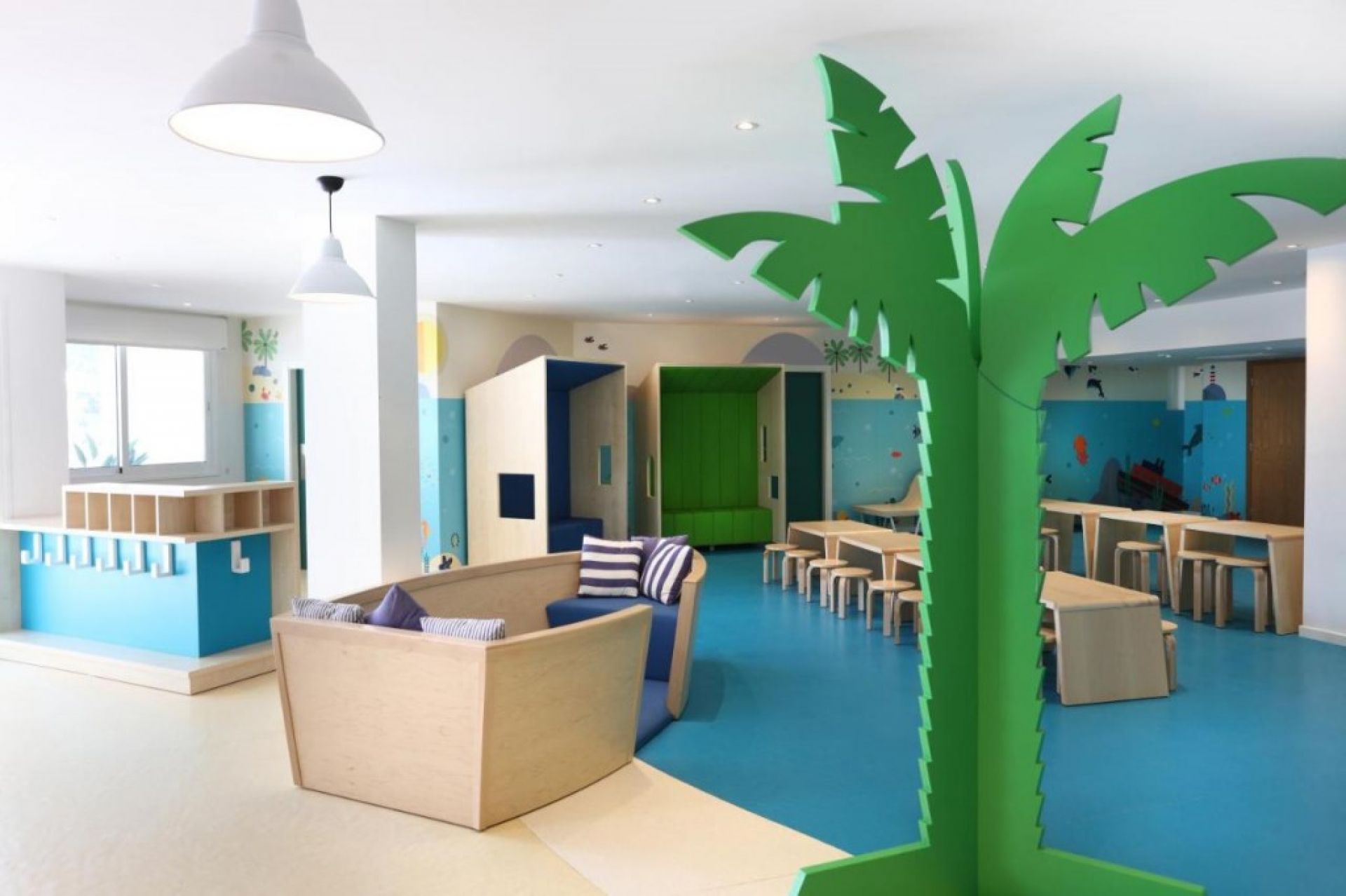 Разположен сред обширна зелена територия, с множество детски площадки за всички възрасти, различни ресторанти и