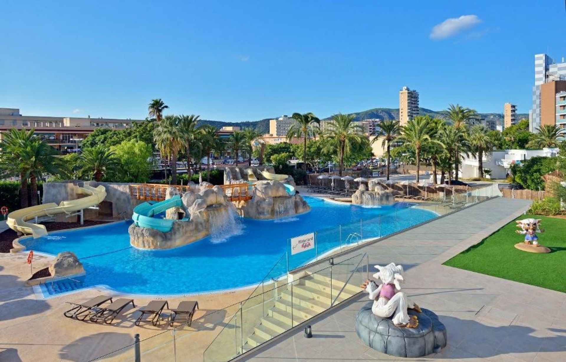 Един от най-добрите хотели в своята категория в Магалуф. Разположен на тихо място. Активна анимация, добра храна и развита инфраструктура. Центърът на нощния живот и забавленията на курорта е на пешеходно разстояние. Хотелът разполага с уникален увеселителен парк, стилизиран като анимационен филм за семейство Флинтстоун. Препоръчваме за всички категории туристи, особено за почивки с деца.