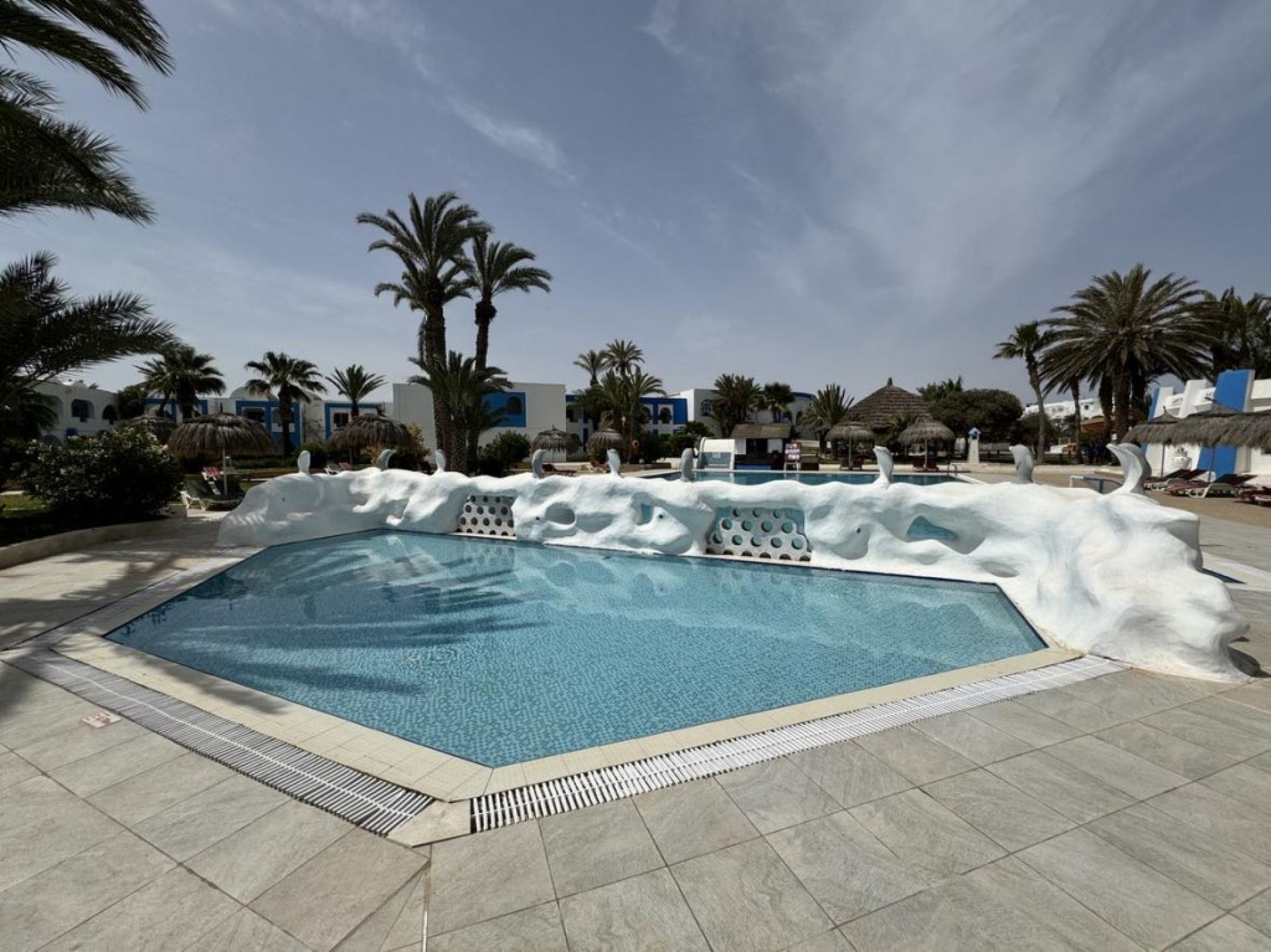 На територията на хотела: Има два външни и един вътрешен басейн, както и безплатен аквапарк. Има Тунизийски а ла карт ресторант гостите могат да го посетят безплатно веднъж за седемдневен престой, бар до басейна, ресторант на шведска маса, кафене, тенис корт, безплатен паркинг, фитнес, водни спортове. Интернет има само на рецепция