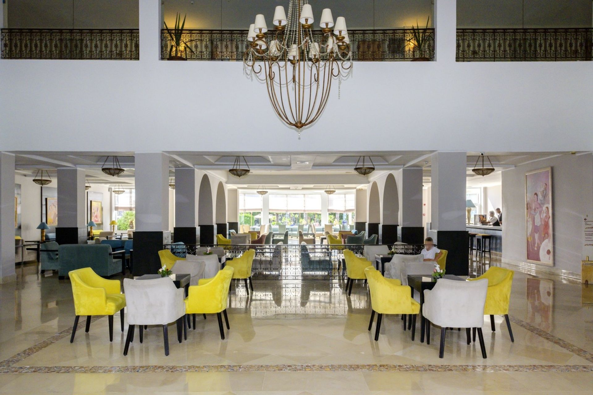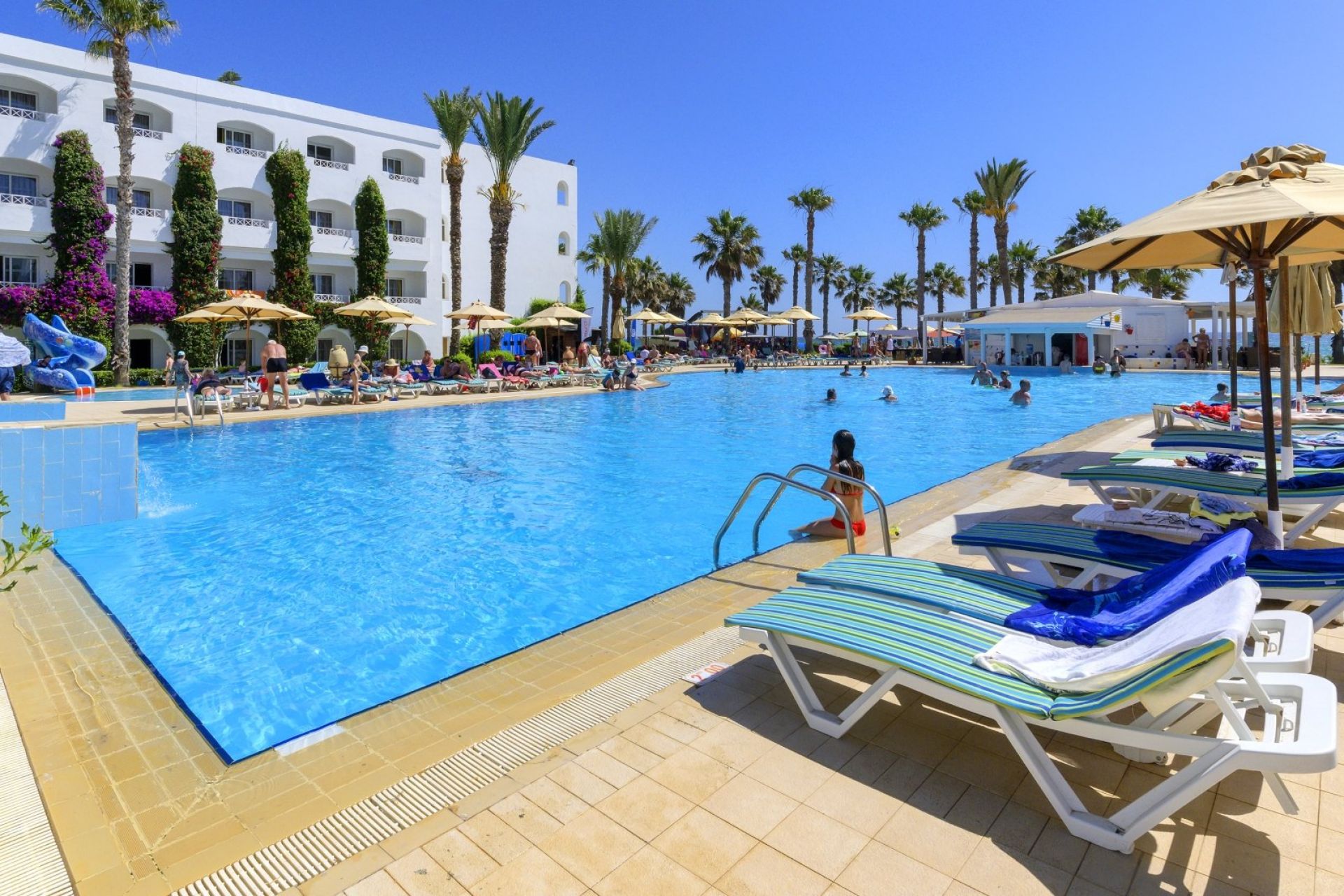 Основен ресторант Thusdrus, 2 а ла карт ресторанта - един с интернационална кухня и втори на плажа, барбекю ресторант (едно безплатно посещение на престой, след предварителна резервация), лоби бар, бар басейн, мавританско кафене, 2 открити басейна, закрит басейн, вътрешен басейн с морска вода в таласо центъра, 5 водни пързалки за възрастни и 1 за деца, анимация, Wi-Fi в лобито, общи части и стаите, сувенирен магазин, обмяна на валута, паркинг.
