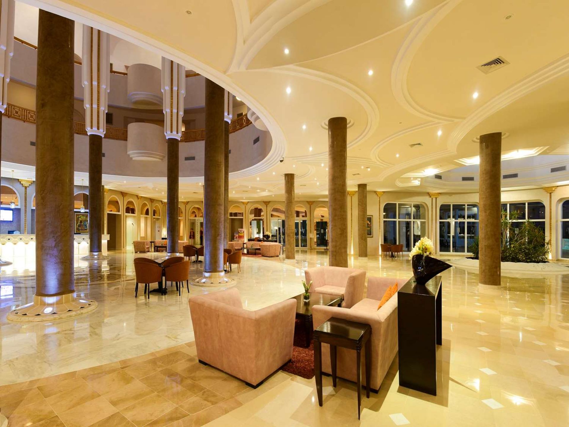 Основен ресторант Fresh, а ла карт ресторанрт Peppino с италианска кухня (платен, едно безплатно посещение на престой, след предварителна резервация), а ла карт ресторанр Le Malouf с тунизийска кухня (платен, едно безплатно посещение на престой, след предварителна резервация), бар Peppino, шоу бар, снак бар, плажен бар Copa Cabana, мавританско кафене, открит басейн, 1 закрит басейн, СПА център, анимация, денонощна рецепция, конферентни зали, обмяна на валута.