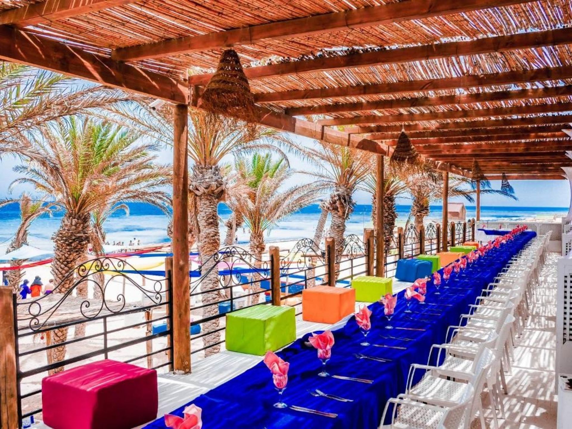 На територията на хотела: Основен ресторант, а ла карт ресторант (с тунизийска кухня едно безплатно посещение за седмичен престой след предварителна резервация), лоби бар, бар басейн, бар на плажа, външен басейн, закрит басейн в Таласо центъра, денонощна рецепция, конферентна зала, Таласо център, сувенирен магазин, обмяна на валута, тематични вечерни представления с анимационен екип (нощни представления и спектакли с участието на гости)