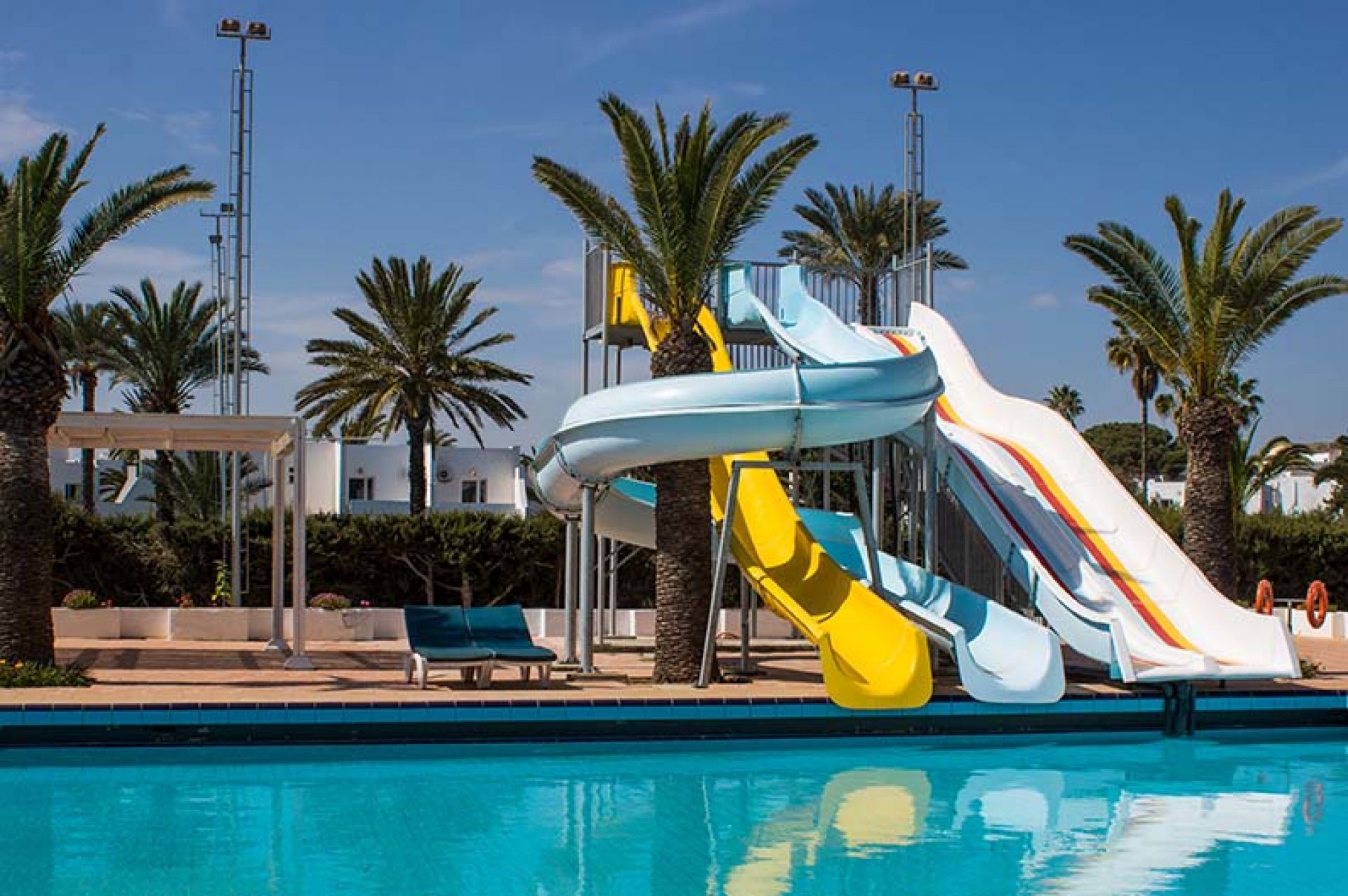 Основен ресторант Yasmine, лоби бар Les Rosesи, бар на плажа Rais, 2 открити басейна, 24 часова рецепция, анимация, 7 тенис корта, обменно бюро, магазини.