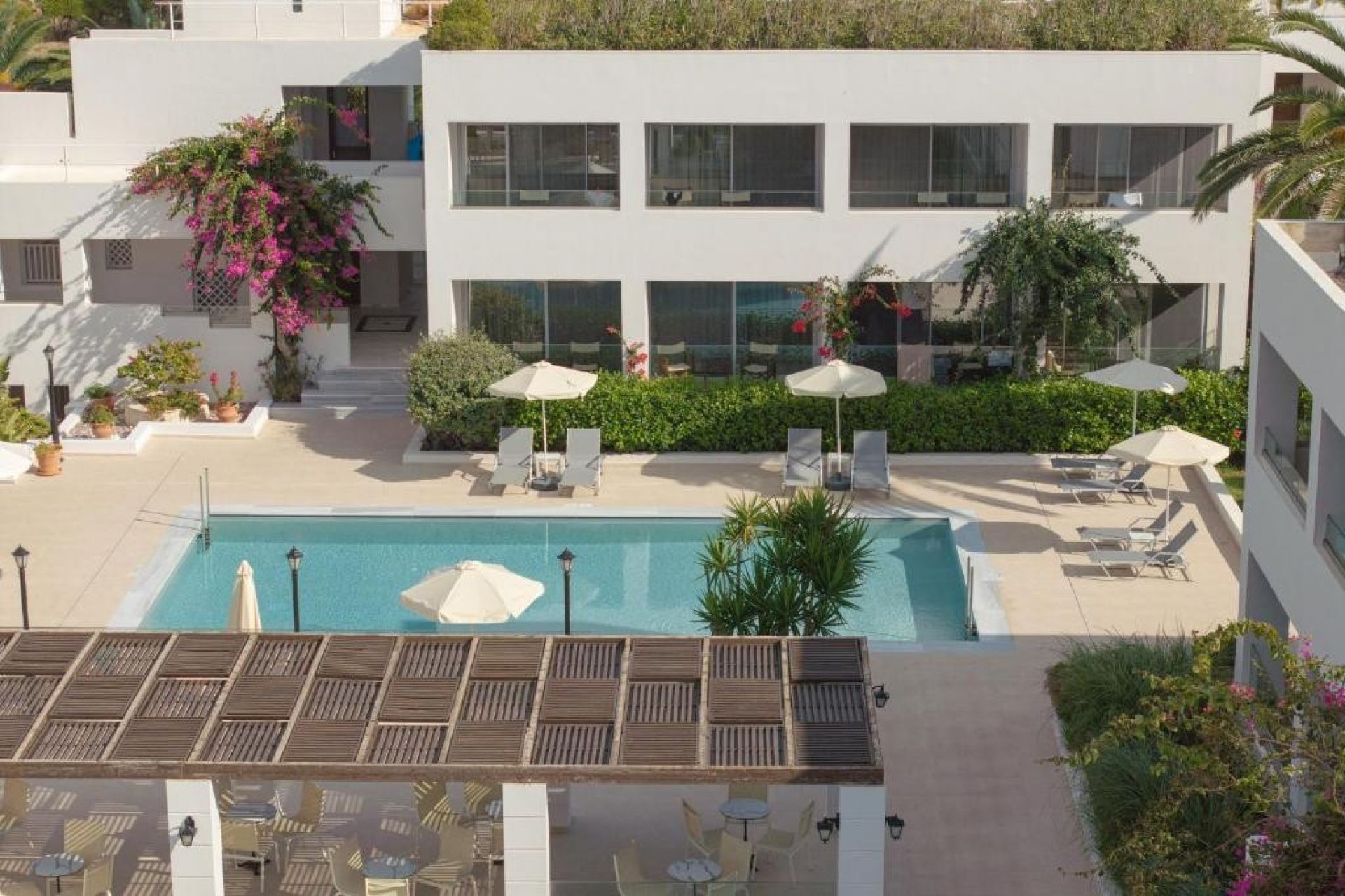 Този хотел предлага 2 големи басейна със солена вода с безплатни чадъри, шезлонги и кърпи за басейн, настаняване на база полупансион и ол инклузив.