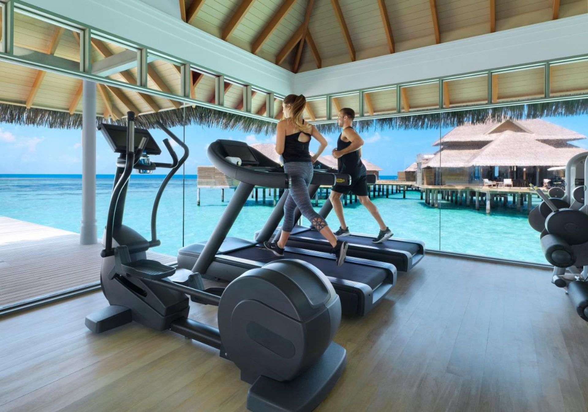 СпортГостите могат да поддържат форма и по време на ваканцията си във фитнес центъра над водата с изглед към океана за повече мотивация.