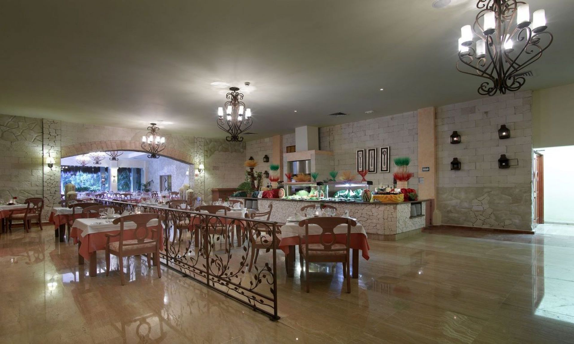 ресторант "Кабах", 10 бара, 6 кафенета, 3 бара на плажа, 6 бара до басейните, 5 открити басейна, 122, 166, 453, 831 и 3 678 кв.м, Воден парк, Jacuzzy, Католическата църква в територията