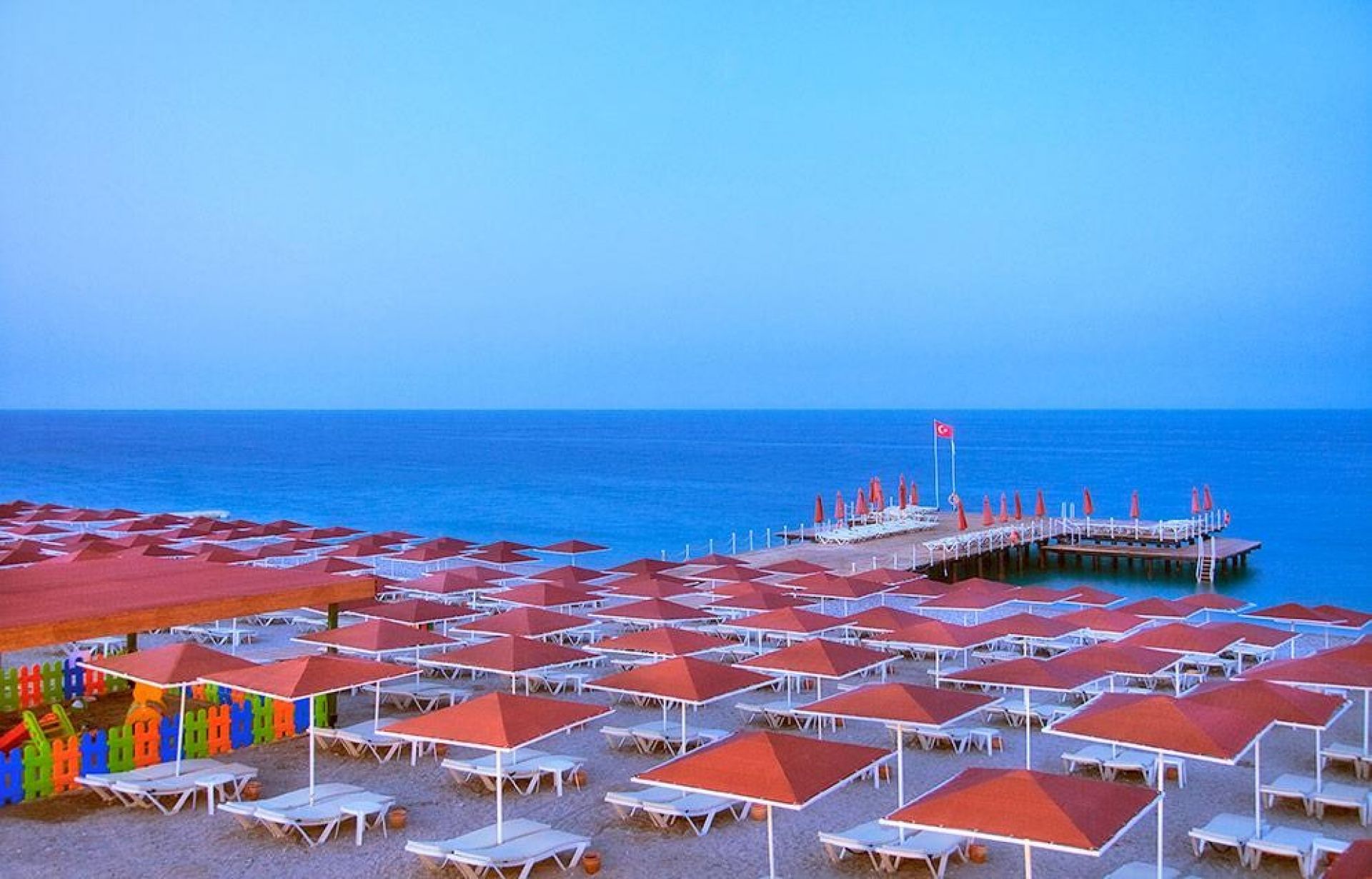 Плаж: Собствен, чакълест. Кей, оборудван с шезлонги и матраци. Чадъри, шезлонги и матраци на плажа и при басейна – безплатно. Плажни кърпи – безплатно. Кабани - срещу заплащане.