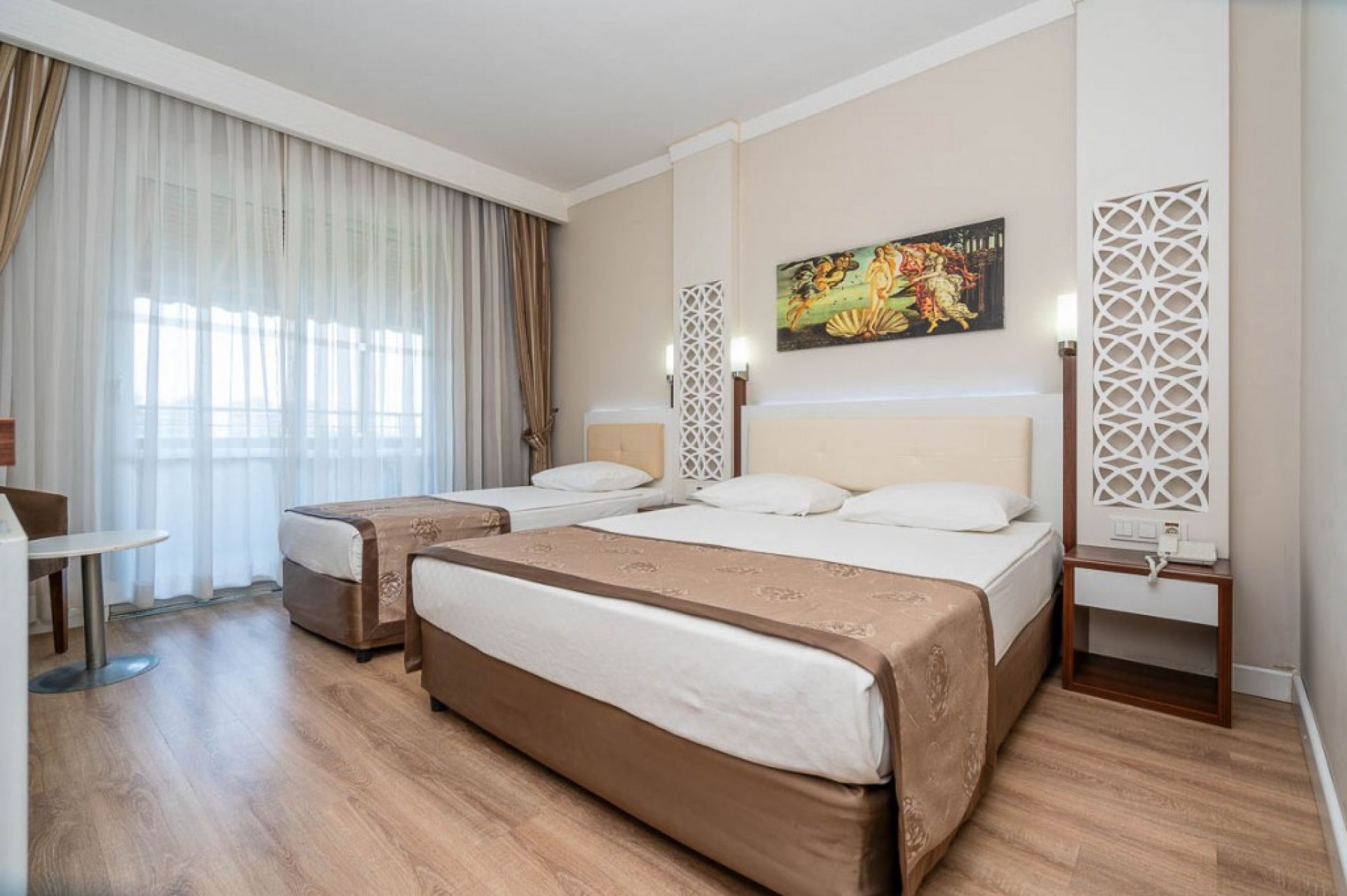 В стаите: Хотелът разполага с 239 стаи, разпределени в стандартни, стандартни с двуетажни легла, суит и фамилни стаи. Всяка една е оборудвана с балкон, климатик, сателитна телевизия, телефон, баня с душ, сешоар, сейф, мини бар (платен), WI-FI.