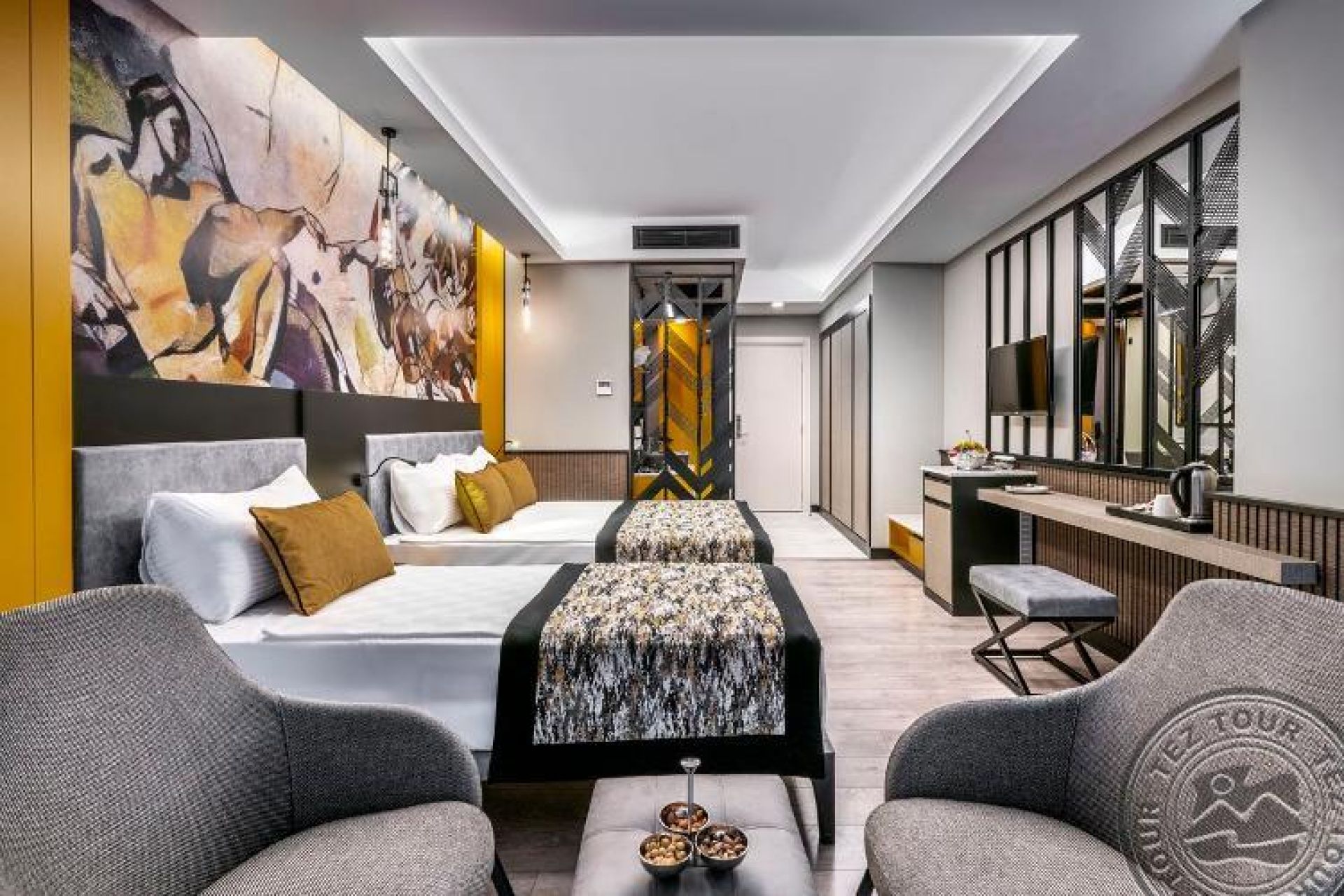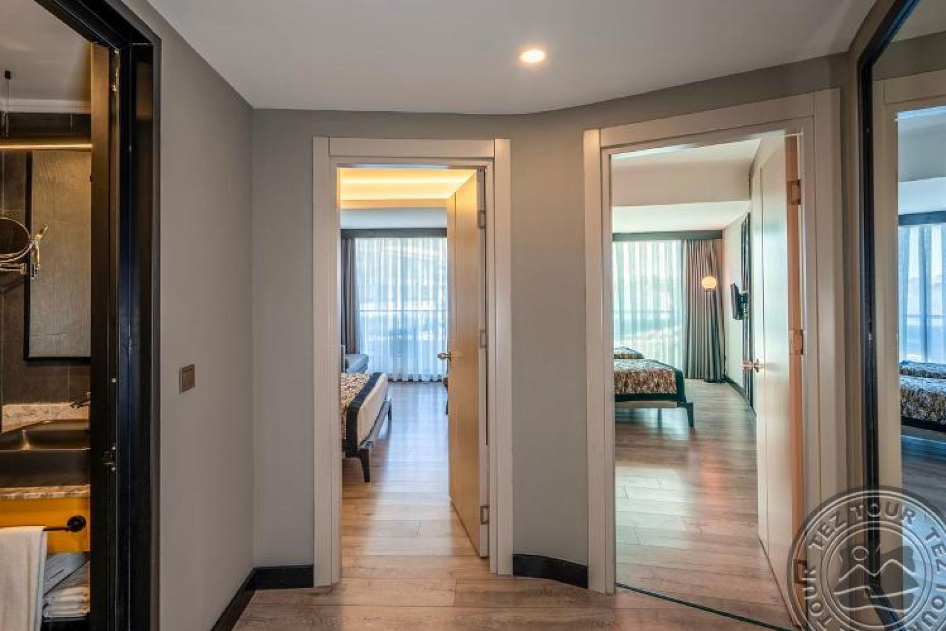 50 двустайни family rooms (2 спални с врата, макс. 4 души, 56 м2).