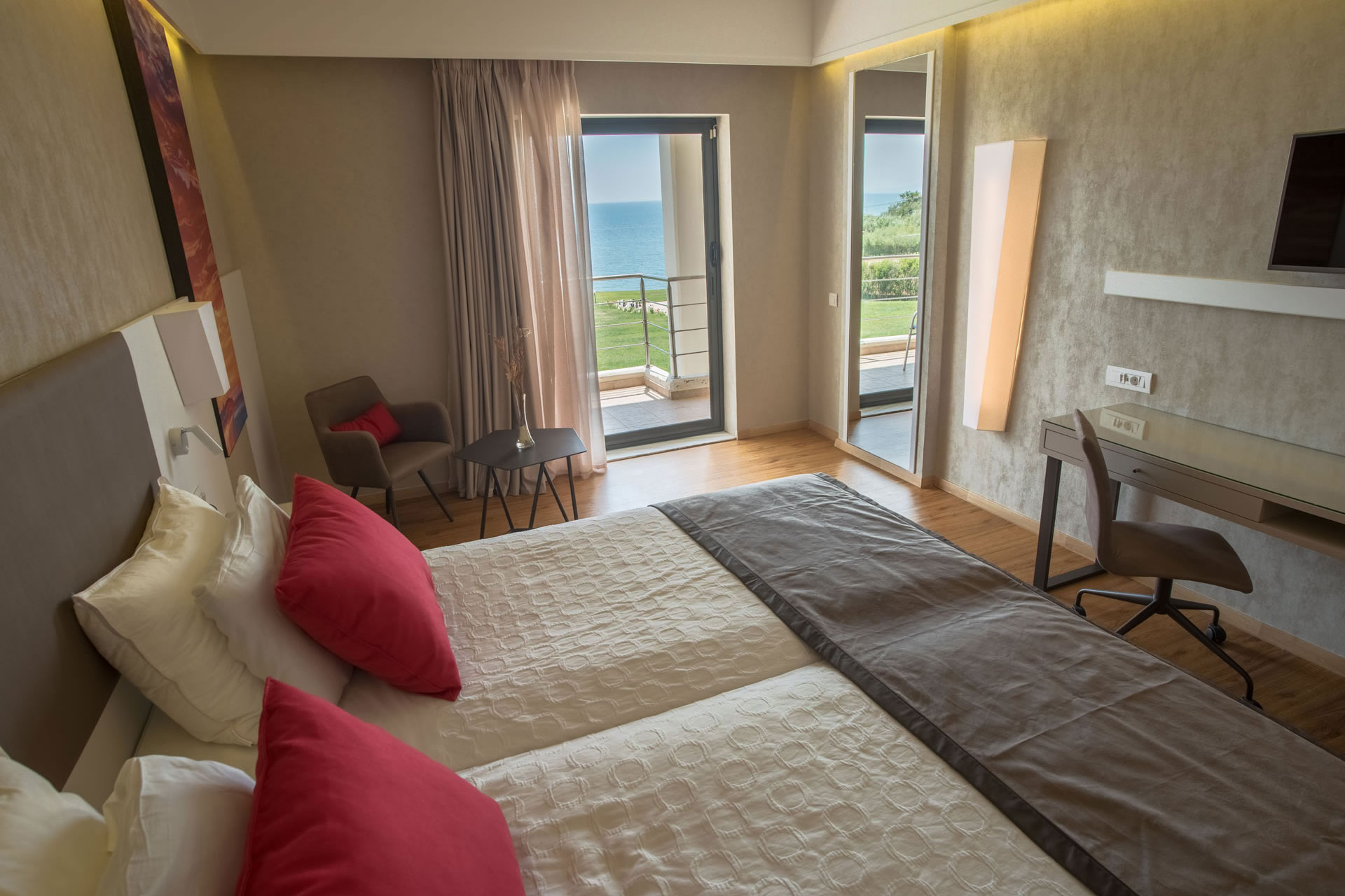 В хотела: частен плаж с ивица от 300 м., ресторант, бар, кафене, 2 басейна, бизнес център, зала с телевизор, сувенирен магазин, детска площадка, паркинг, безплатен интернет, rent-a-car услуги, обмяна на валута, рум сървис.