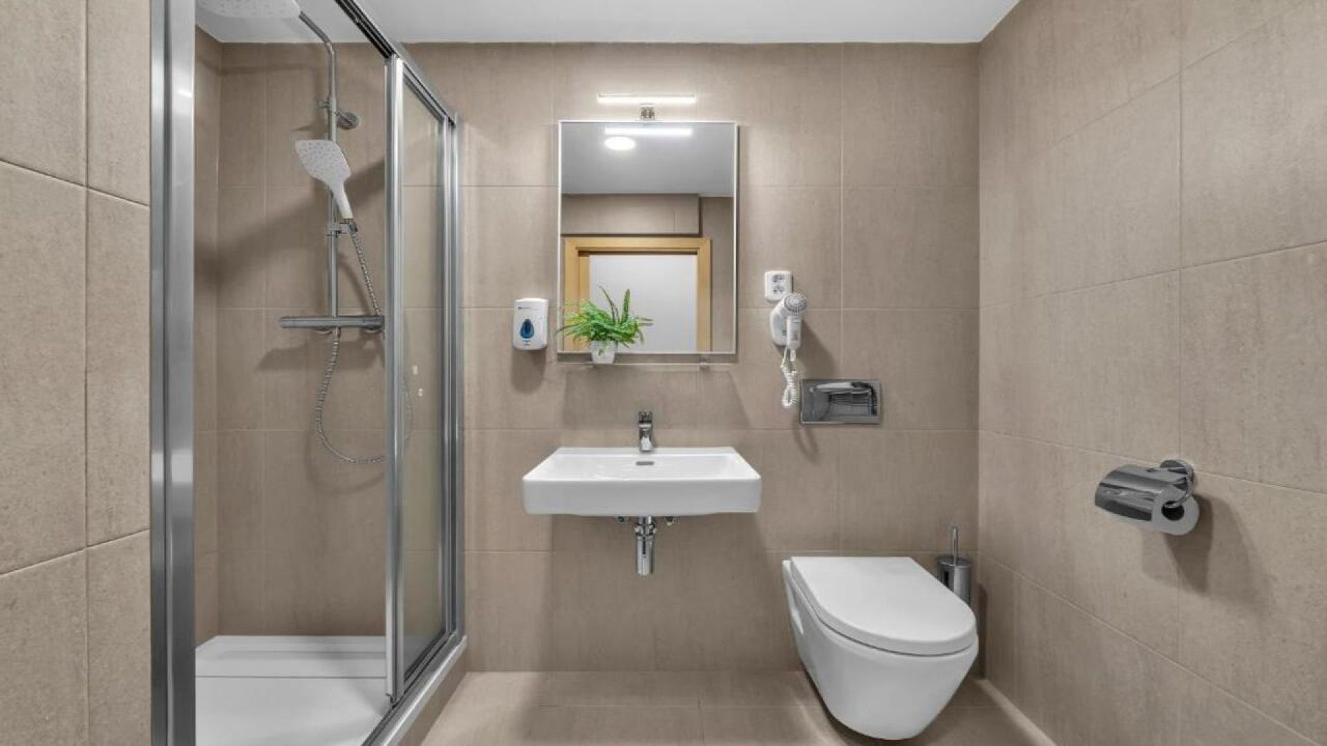 Всички стаи са обзаведени с основни мебели: легла с удобни матраци, гардероб, бюро, телевизор с плосък екран, минихладилник, самостоятелна баня с душ, тоалетни принадлежности и сешоар. Стаите разполагат с централно отопление и добри шумоизолационни прозорци.
