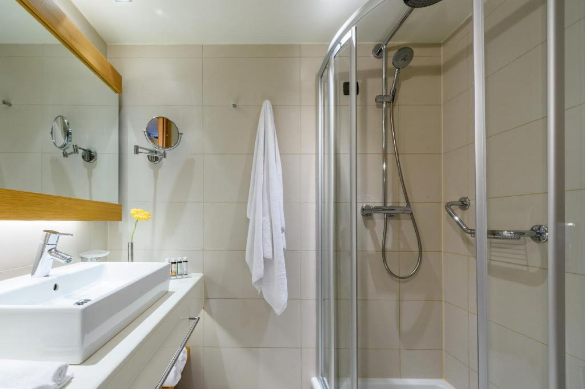 В стаите има климатик и санитарен възел. Освен това могат да се ползват минибар и писалище. Към стандартното оборудване принадлежи също хладилник. Към допълнителните удобства спада комплект ютия с дъска за гладене. Малки екстри, сред които достъп до интернет, телефон и телевизор, гарантират приятен престой. Допълнителен уют се осигурява при възможността за избор на подходяща възглавница. Могат да се резервират стаи, подходящи за хора с двигателни проблеми. Оборудването на санитарните възли включва душ. Сешоар и халати за баня са предвидени за ежедневно ползване. За по-голям комфорт в санитарните възли се осигуряват козметични продукти. Възможно е да бъдат резервирани стаи със санитарни възли, пригодени за хора в инвалидни колички.